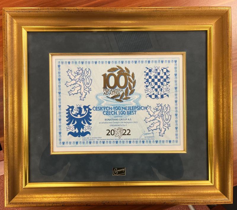 Die Gesellschaft BONATRANS GROUP hatte in diesem Jahr Erfolg in der Kategorie „Maschinenbau und IT“. Die Auszeichnung wurde bei der festlichen Übergabe im Spanischen Saal der Prager Burg von Michal Neumann, dem Betriebsleiter der BONATRANS, übernommen. Wie er anmerkte ist das Motto des Wettbewerbs „Per aspera ad astra“, also „Über Hindernisse zu den Sternen“. „In der BONATRANS haben wir gemeinsame Sterne, Hindernisse hat jeder von uns auf seiner Ebene, auf der Ebene der Abteilungen und der Bereiche, bereichsübergreifende Hindernisse und auch mit den Lieferanten oder Kunden. Diese Auszeichnung gehört in jedem Falle allen, die zum Erfolg der BONATRANS beitrugen.