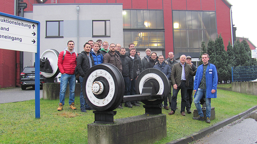 Eine Gruppe von interessierten Studierenden des Kurses Fabrikbetriebsorganisation der Hochschule Ruhr West besuchte am 20.12.2017 die Gutehoffnungshütte Radsatz GmbH, um sich theoretisch angeeignetes Wissen in der praktischen Anwendung anzusehen.