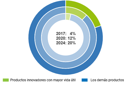 Los volúmenes de CO2 2, que nuestros clientes han evitado gracias a nuestros productos innovadores Porcentaje de productos innovadores con mayor vida útil